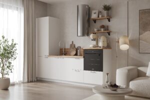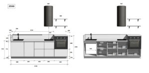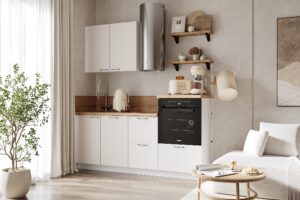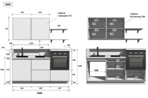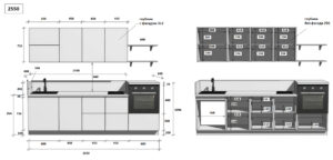 Кухня Техно-6 3,0х1,8м (Белый/Браш Мени Грин)