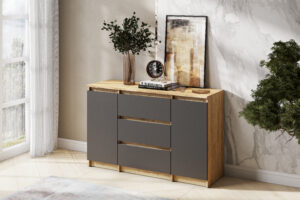 Комод Денвер 3 ящика двухстворчатый (Серия 2) Дуб Золотой/Графит